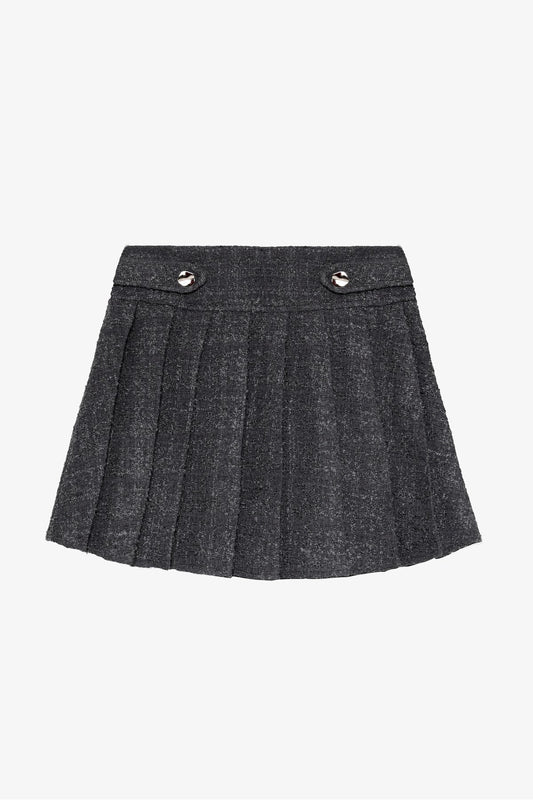 Düğme Detaylı Pileli Tüvit Mini Etek Antrasit