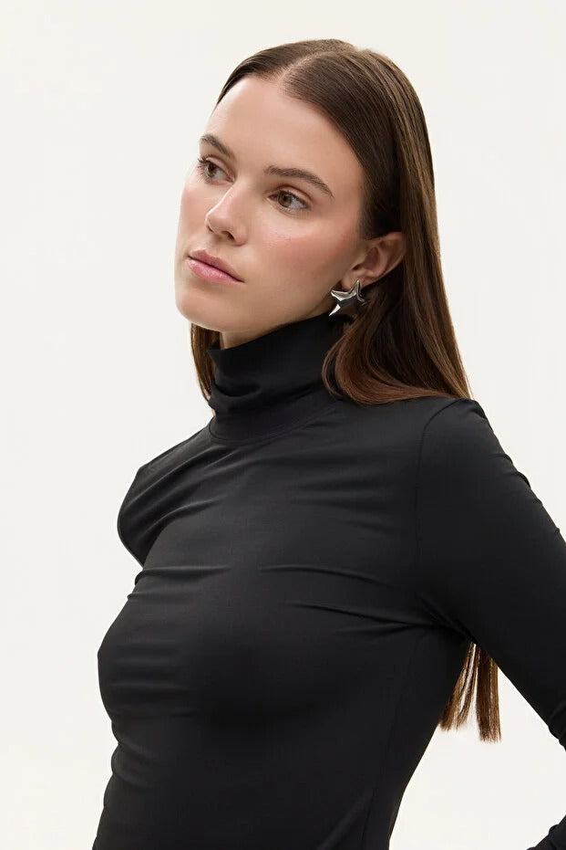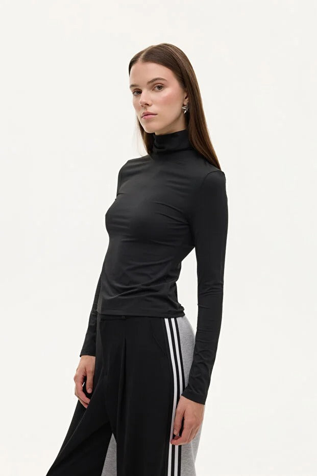 Boğazlı Uzun Kollu Basic Bluz Siyah