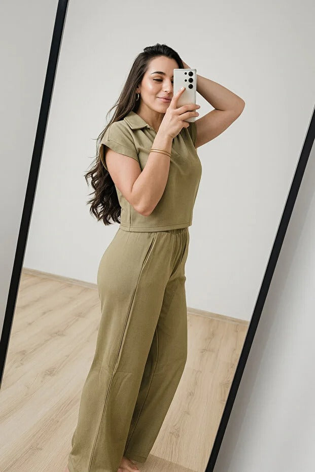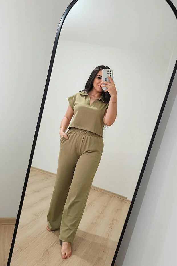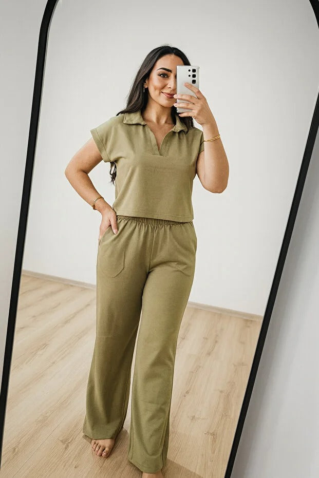 Kadın ikili Takım Rahat Kesim V Yaka Kısa Kollu