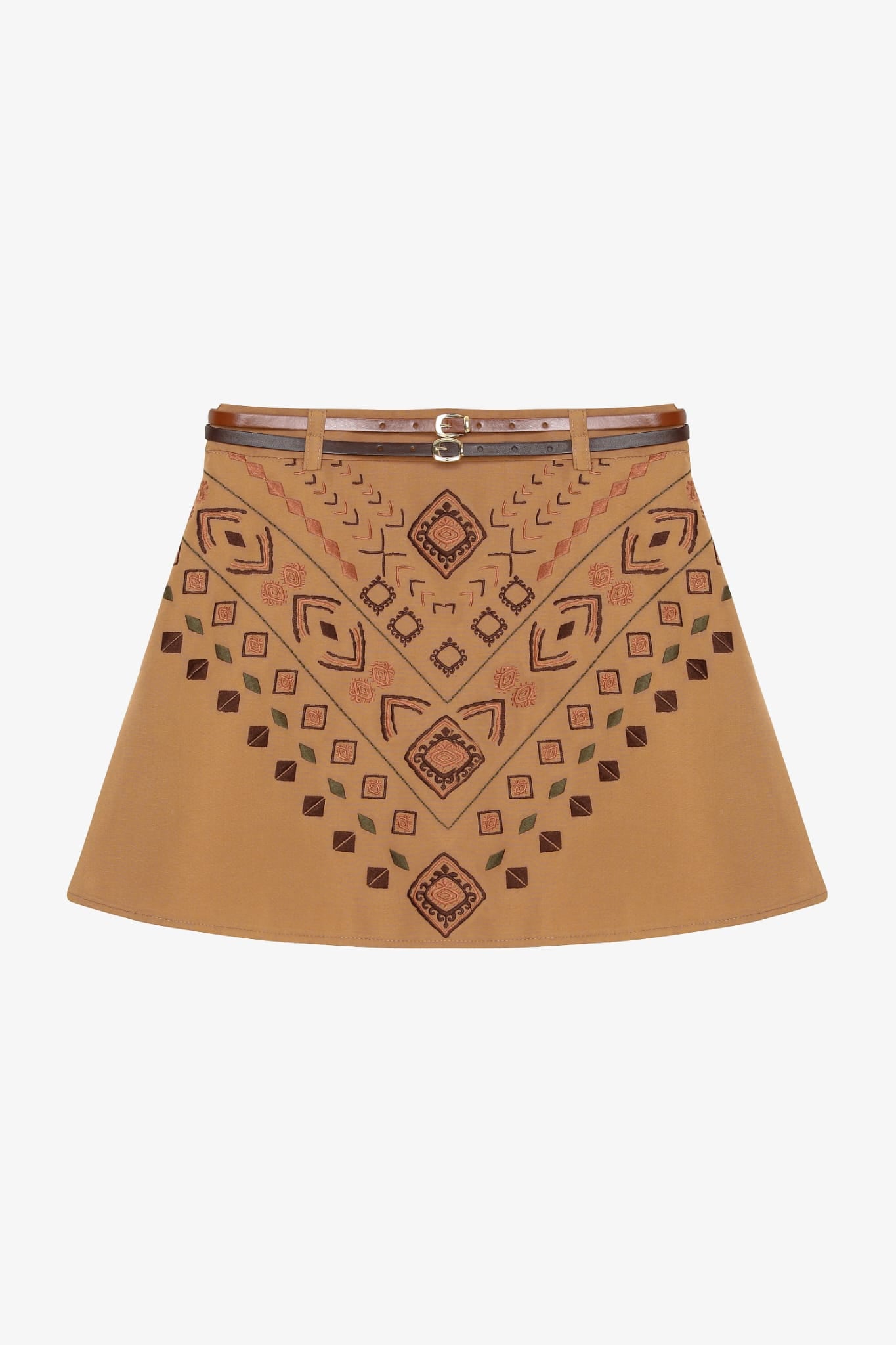 Nakış Detaylı Kemerli Etek Bej
