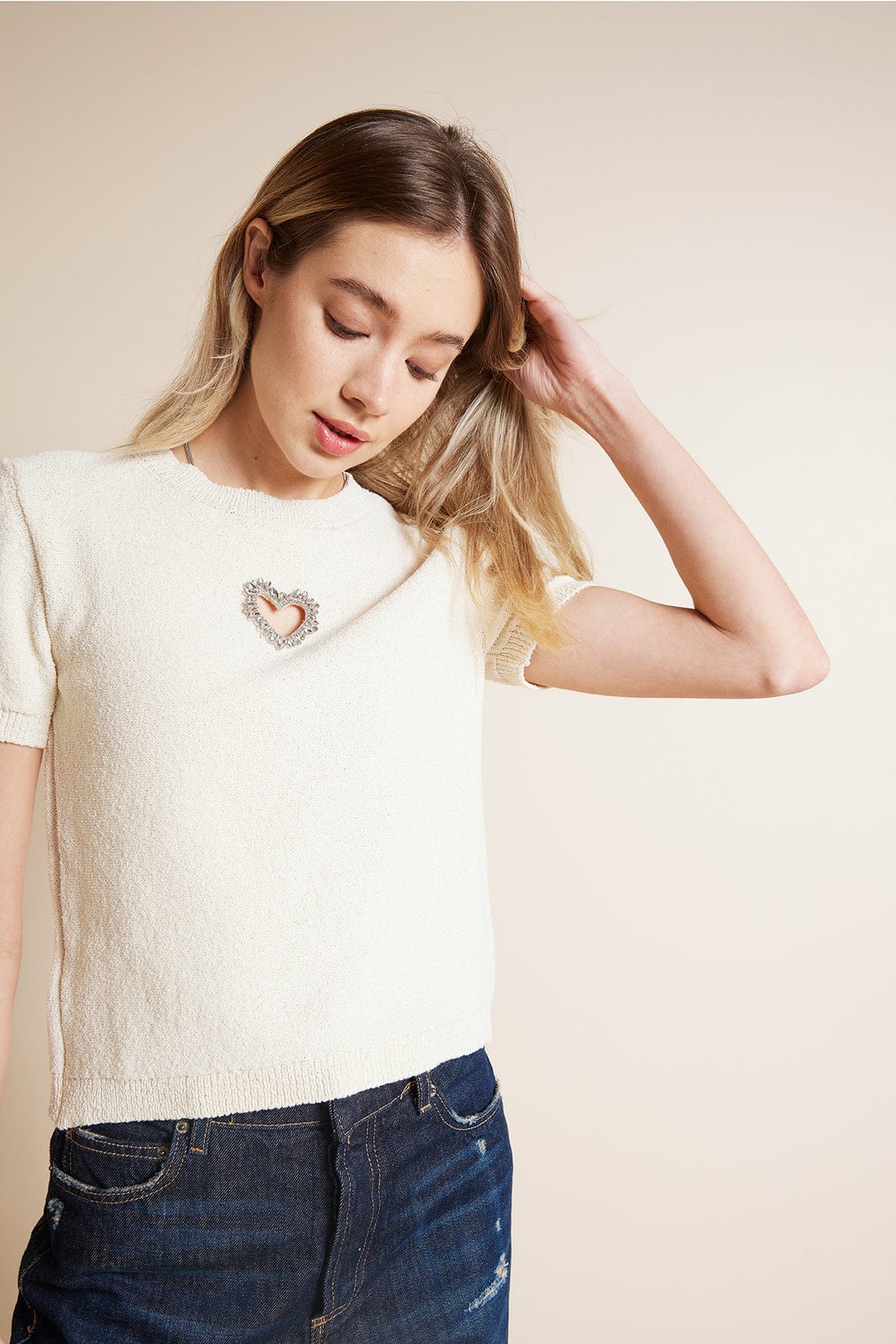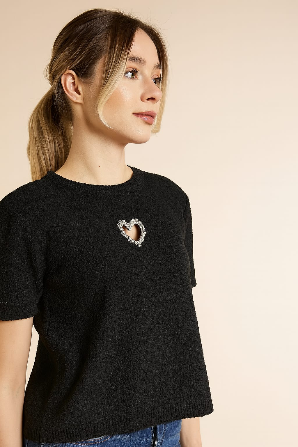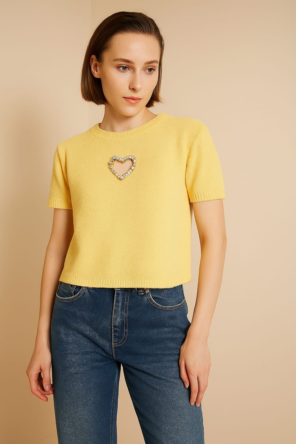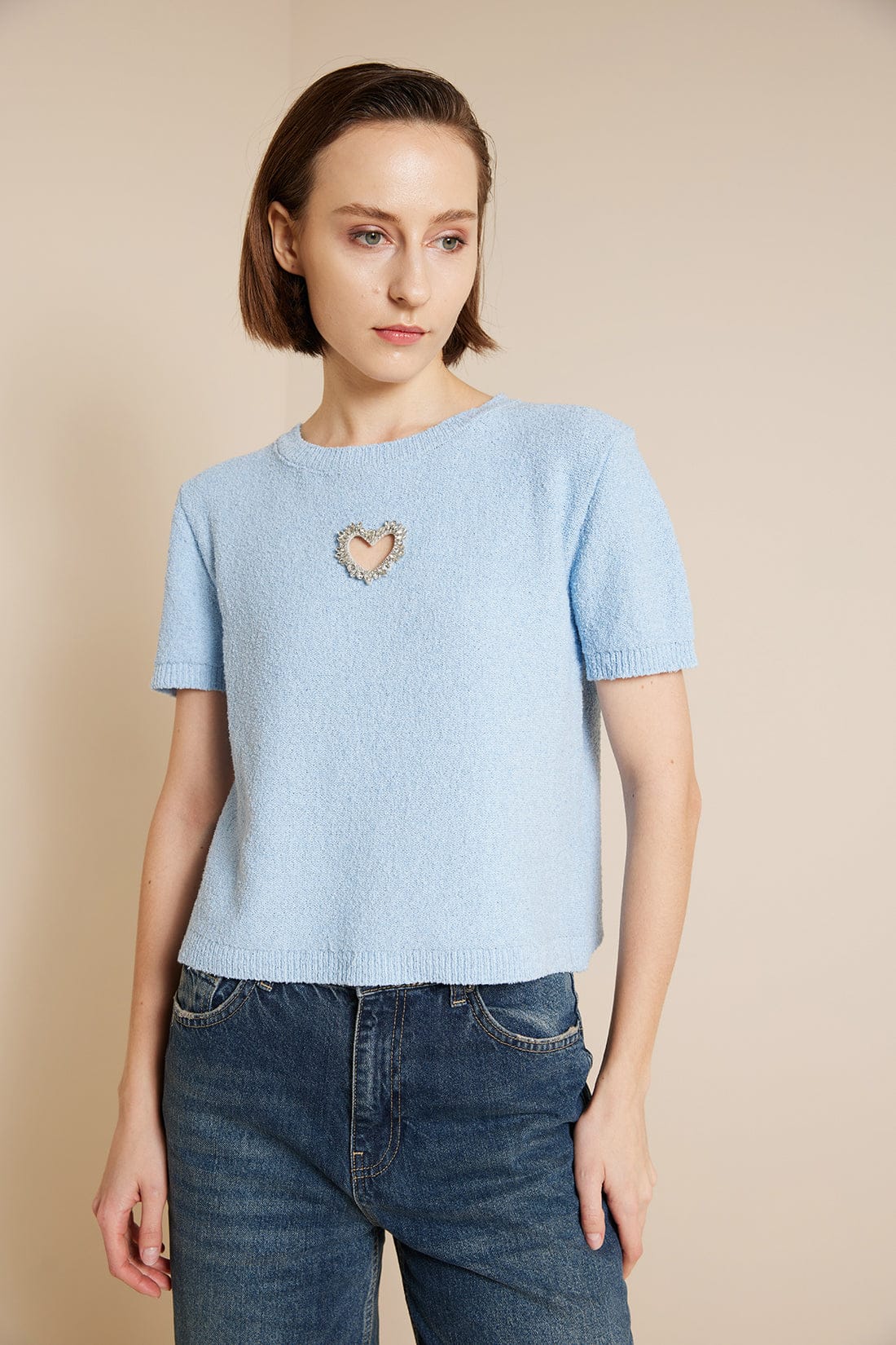 Triko Bluz Kalp Detaylı